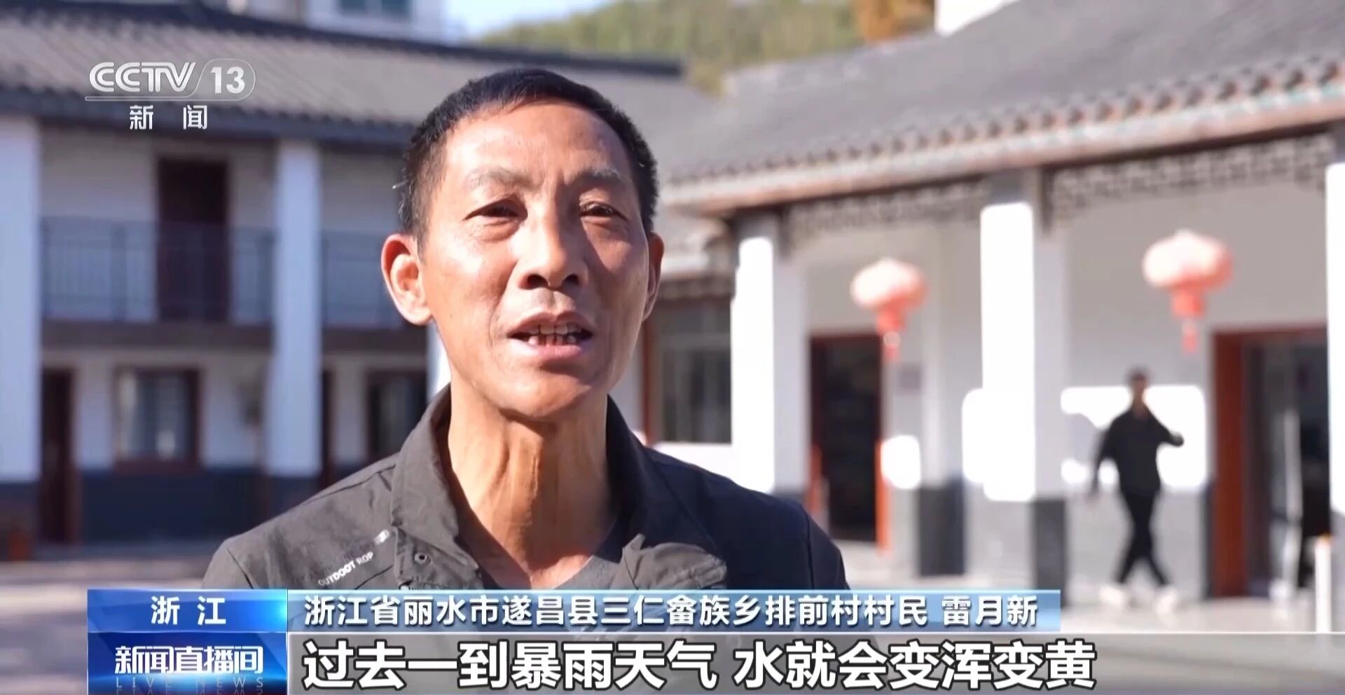 浙江省丽水市遂昌县三仁畲族乡排前村村民 雷月新:过去一到暴雨天气,水就会变浑变黄,枯水天或者春节返乡人员多的时候,水又不够用。